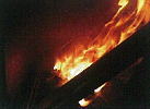 二次延焼後のフラーレ、黒く燃えていますが、広がらず自己消火性で延焼していません。
