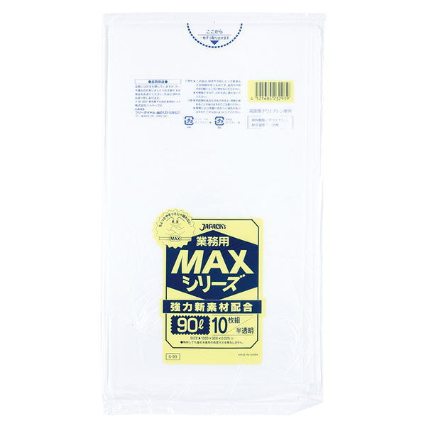 90Lサイズの0.04mm厚さの黒のポリ袋です。メタロセン配合で柔軟性に優れ、伸びにも強く突起物にも強いポリ袋です。