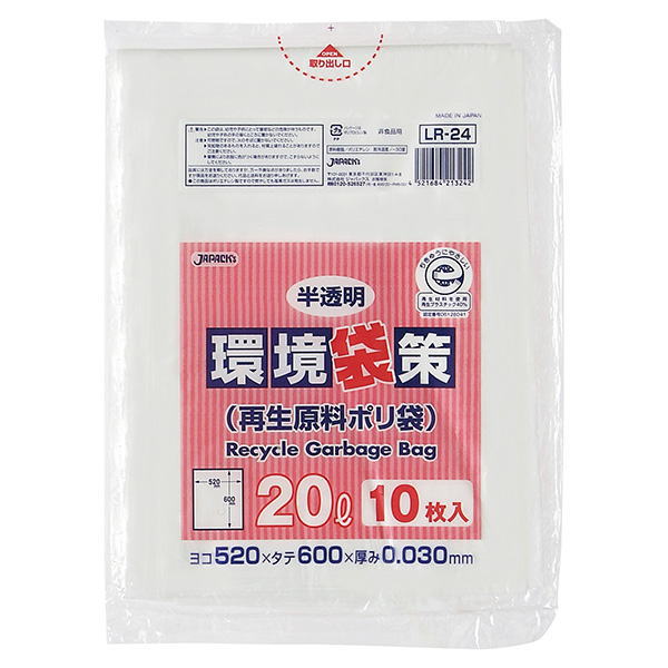 地球にやさしい再生原料を40%使用し、地球にやさしい環境に配慮したポリ袋です。