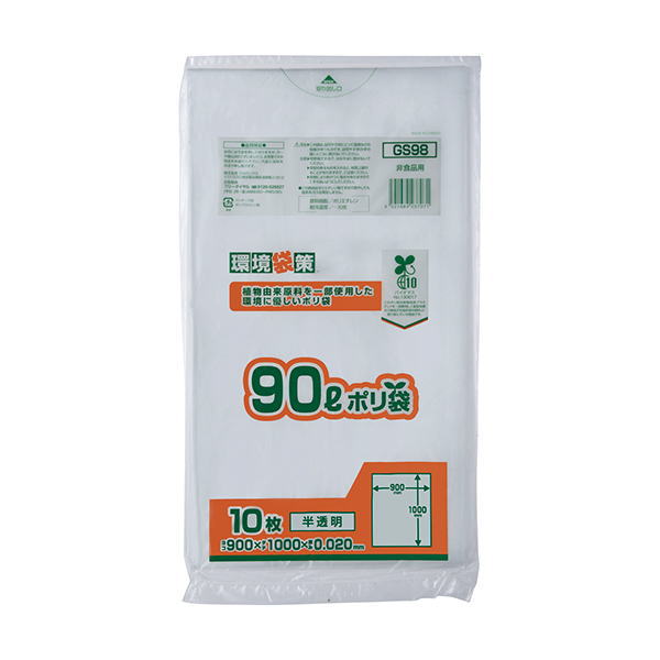 環境に配慮したバイオマス10%配合の90Lの大きめポリ袋です。
