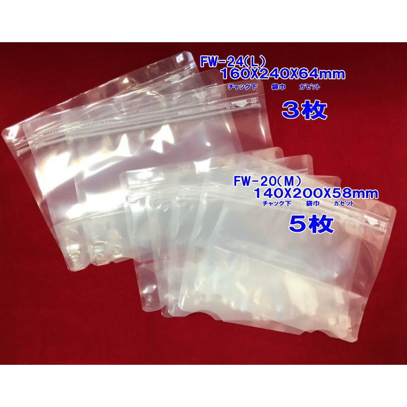 | 品番 | サイズ(チャック下X袋巾(ガゼット巾) | 入数 |