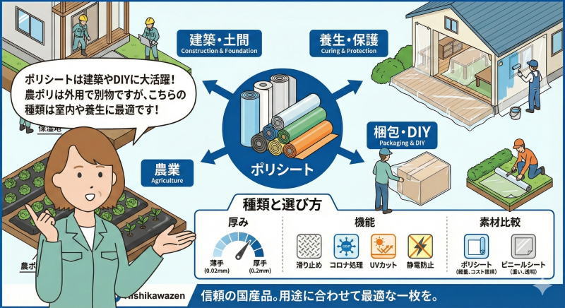 一般のポリシートと農ポリはどう違うのか、ビニールシートとの違いは