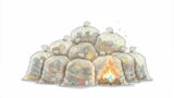 「魚や肉や漬物をポリ袋に入れて縛ったものを並べた画像を作って」