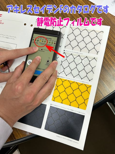カタログにある「静電防止」のセイデンFの上で測ってみました