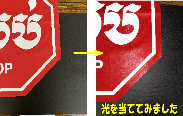 この旗、ただ文字を変えただけではありません。 西川善(株)が得意とする反射材を使用しているので、車のライトが当たると…